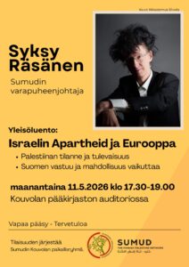 Sumud on intersektionaalinen järjestö, joka työskentelee Israelin apartheidin, miehityksen ja kolonialismin lopettamiseksi sekä palestiinalaisten ihmisoikeuksien ja poliittisten oikeuksien toteuttamiseksi.