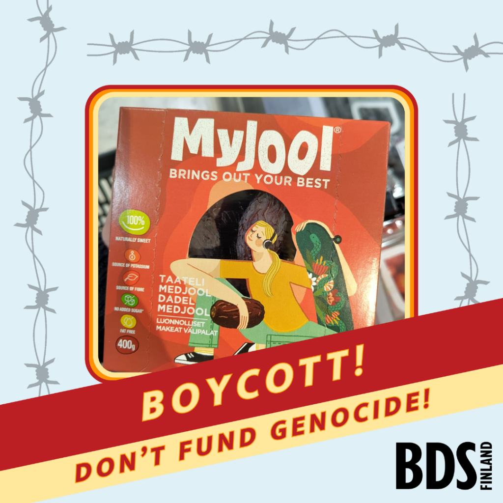 The campaign is organized by the Sumud BDS Finland working group. Learn more about the BDS movement and its goals.