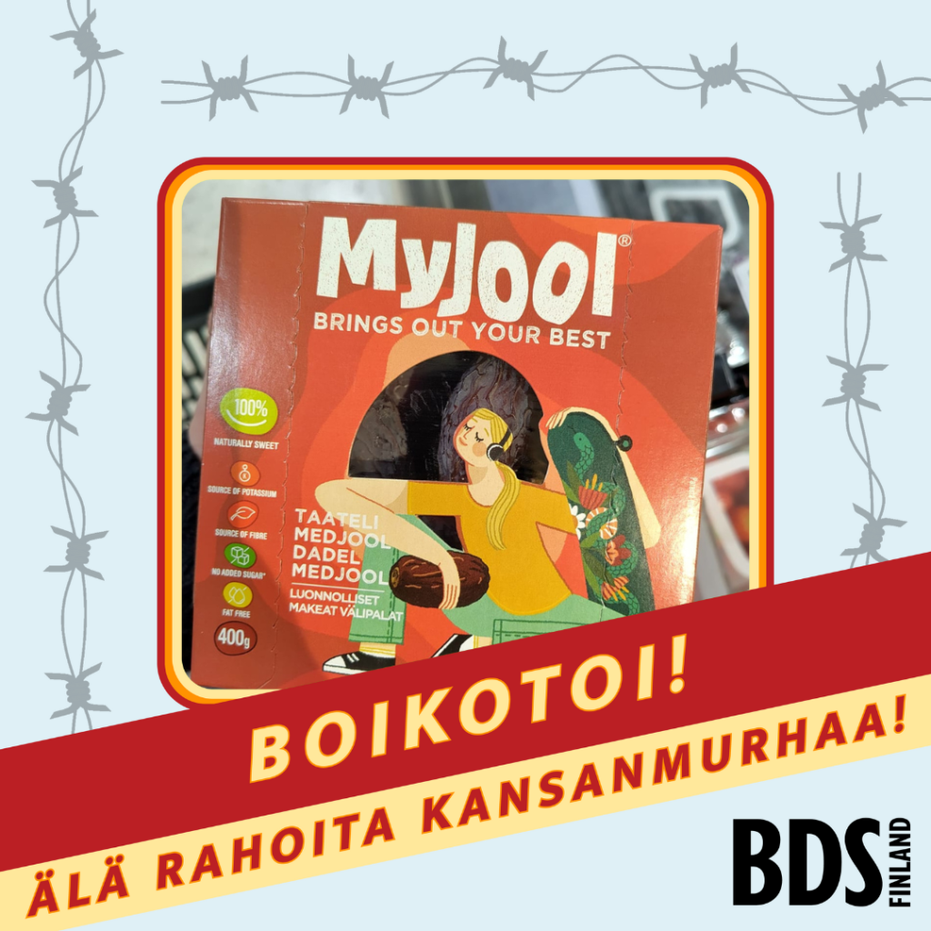 Kampanjan järjestää Sumudin BDS Suomi -työryhmä. Lue lisää BDS-liikkeestä ja sen tavoitteista.